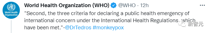 「其次,评判某一病毒爆发为国际性公共卫生紧急事件有三个标准,这是在国际卫生条例的框架下的规定。目前猴痘病毒已全部满足。」
