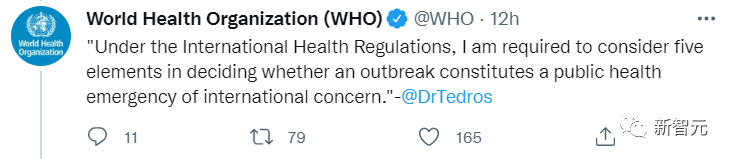 「所以简单来说,猴痘病毒在全球范围爆发并快速传播,且传播方式有多种新模式。有关传播方式的相关信息,WHO知之甚少,而且符合国际卫生条例的标准。」