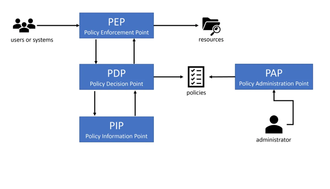 此外,白皮书还展示了不同的 XACML 实体、它们之间的交互以及它们与 Kubernetes 策略管理的关系。这包括策略实施点(Policy Enforcement Point,PEP)、策略决策点(Policy Decision Point,PDP)、策略信息点(Policy Information Point,PIP)和策略管理点(Policy Administration Point,PAP)。