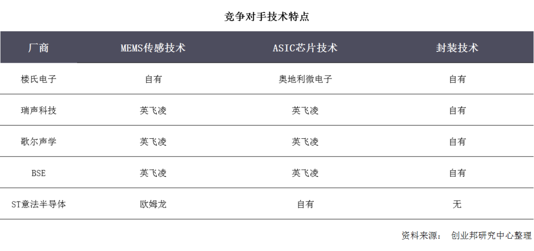 目前公司的主要竞争对手中,有半导体科技公司英飞凌、意法半导体、应美盛等,也有以精密器件制造为主的楼氏、瑞声科技和歌尔股份等,其中英飞凌和意法半导体为IDM(Integrated Device Manufacture,即一体化制造商)模式,其他公司采用Fabless(无工厂芯片供应商)模式。