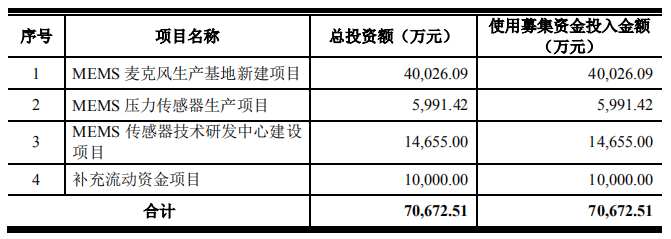 公司目前主要产品线包括MEMS麦克风、MEMS压力传感器和MEMS惯性传感器。公司MEMS麦克风出货量位列全球前五位。公司产品目前主要应用于智能手机、平板电脑、笔记本电脑、可穿戴设备和 智能家居等消费电子产品领域,同时也逐渐在汽车和医疗等领域扩大应用,目前已使用公司产品的品牌包括华为、传音、小米、百度、阿里巴巴、联想、索尼、LG等。