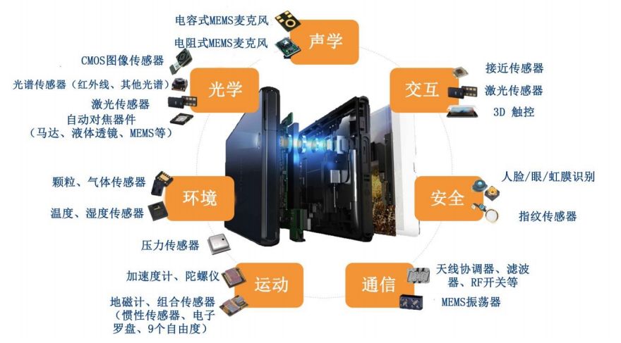 我们日常接触最多的消费电子产品中,MEMS传感器正被广泛的应用。一个智能手机中的MEMS传感器就有声学、光学、环境、运动、通信、安全和交互等,这些传感器使得电子设备更具互动性和智能化。