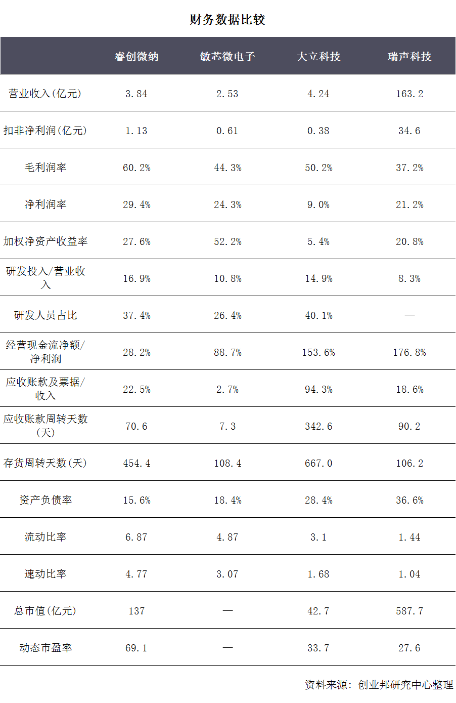 从资本结构与偿债能力来看,睿创微纳的资产负债率为15.6%,敏芯微电子为18.4%,两者相当。