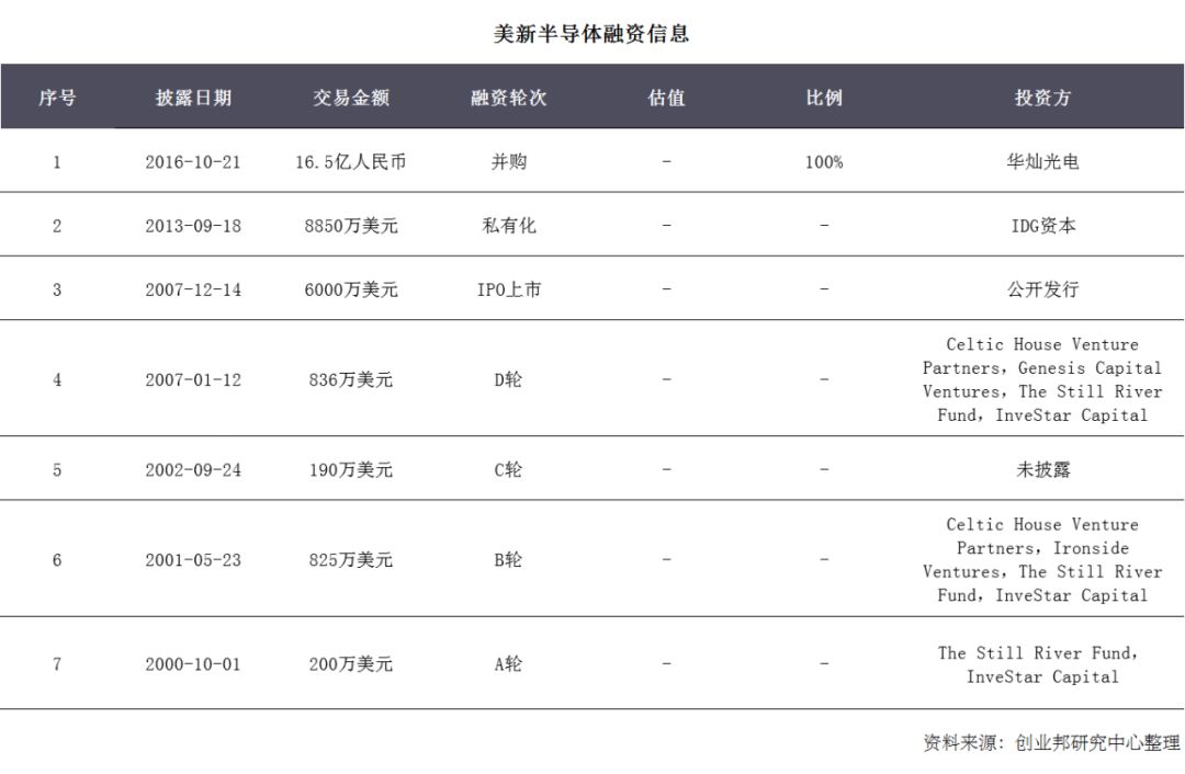 美新半导体(无锡)有限公司是全球领先的MEMES传感器公司,成立于1999年,2007年在美国上市,是全球第一家MEMS技术上市公司。2013年私有化,2018年并入华灿光电。2019年9月24日,华灿光电发布公告拟以16.5亿元向天津海华新出售全资控股美新半导体的和谐光电100%股权。
