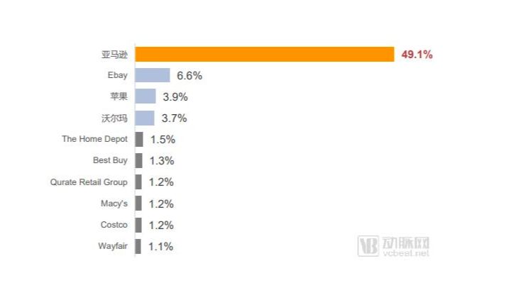 (2017年美国电商公司市场占比情况,资料来源,方正证券)