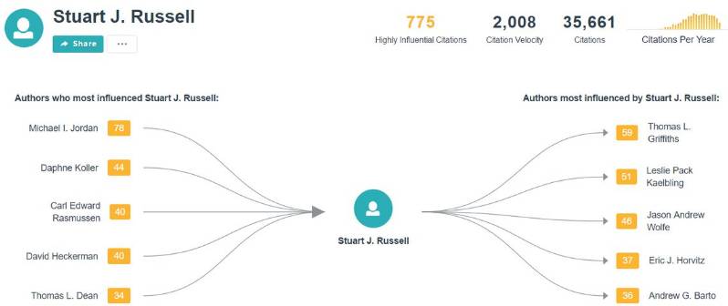 这张图是 Russell 在 Semantic Scholar 平台上的学术影响力评估,可以看到他有 775 的高影响力。下面机器之心将从 Russell 最具影响力的几篇论文和最新发表的几篇论文这两个方面梳理其学术成果。