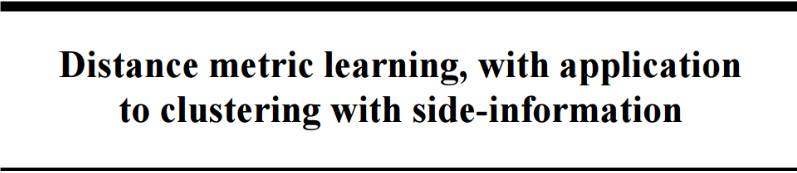 在该论文中,作者们发现许多算法严格依赖为输入提供优良的度量标准。例如,数据通常是通过所谓「合理」的方式进行聚类。因此对于需要良好度量的应用,他们希望能提供更加系统的方式规范化主观认为「类似」的方式。在这一篇论文中,作者们提出了一个算法,即在给定 n 维点的相似样本对情况下,学习一个 n 维距离度量(distance metric)来表征这些样本之间的关系。他们的算法基于将度量学习作为凸优化问题,并能得出有效的局部最优解。作者们还经验性地证明度量学习能显著提高聚类算法的性能。