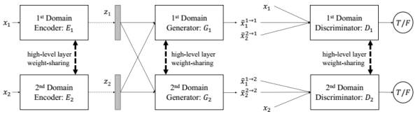还有个巧妙的思路,是把CoGAN拆开,不同domain作为C-GAN条件的更加显式的做法[16]: