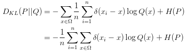 公式的第二项就是熵,先不管这项,用H(P)表示。接下来考虑一个小trick:从Q中抽样n个样本,来估算P(x)的经验值(empirical density function):