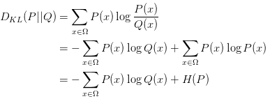 MLE是一个最基本的思路,实践中用得很多的还有KL散度(Kullback–Leibler divergence),假设真实分布是P,采样分布是Q,则KL散度为: