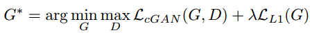pix2pix和SRGAN的一个异曲同工的地方是都有用重建解决低频成分,用GAN解决高频成分的想法。在pix2pix中,这个思想主要体现在两个地方。一个是loss函数,加入了L1 loss用来让生成的图片和训练的目标图片尽量相似,而图像中高频的细节部分则交由GAN来处理:
