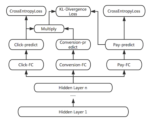 ❷ 通过多任务之间的关系来建模出新的 loss 函数,比如阿里的 ESSM,ESSM2。