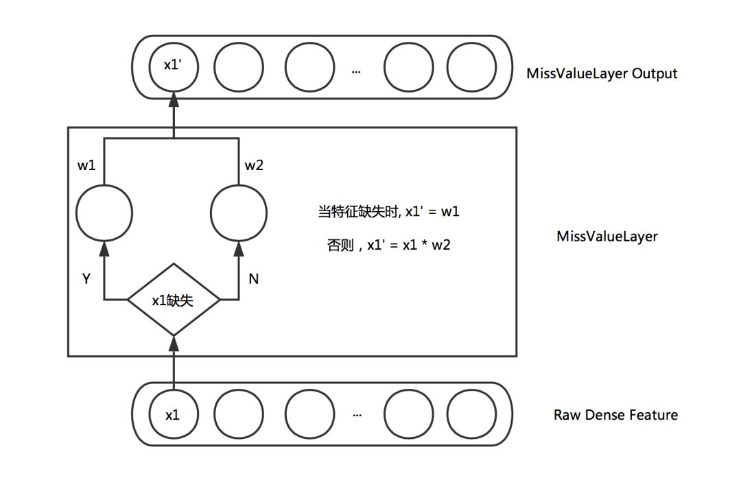 ❶ Missing Value Layer:缺失的特征可根据对应特征的分布去自适应的学习出一个合理的取值。