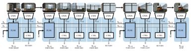 图4中的Q表示文本问题的编码向量,at表示t时刻agent所采取的动作(action),ht为循环神经网络中的隐向量,PLNR为“规划器”,CTRL为“控制器”。特别需要注意的是,在图4的架构中,一系列的PLNR构建为一个循环神经网络,换言之,时间t的变化只在规划器进行动作的时候。具体实现的数据流为,问题编码和上一时刻(t-1)的动作及隐向量同时送入“规划器”,规划器输出该时刻(t)的动作(包含直线行走、转弯等),当“规划器”完成t这个时刻的动作选择后,数据流会立即流进“控制器”中,“控制器”接受当前时刻t的动作,视觉模块CNN给出的视觉特征向量,以及循环神经网络中的隐向量,并输出“控制器”的动作(延续“规划器”的动作或返回至“规划器”数据流中)。通过这样的数据流的分流,可以有效的利用“规划器”控制agent的动作序列,而利用“控制器”决定每个动作需要agent执行的次数。