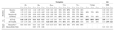 LSTM+Question: 上述的Reactive模型没有记忆信息,而这一个模型是利用问题的编码,当前帧,之前的动作共同来预测接下来的动作。这些同ACT(作者提出的模型)是相同的,与这个模型比较的原因是作者探索其提出的规划器-控制器(planner-controller)架构的有效性。