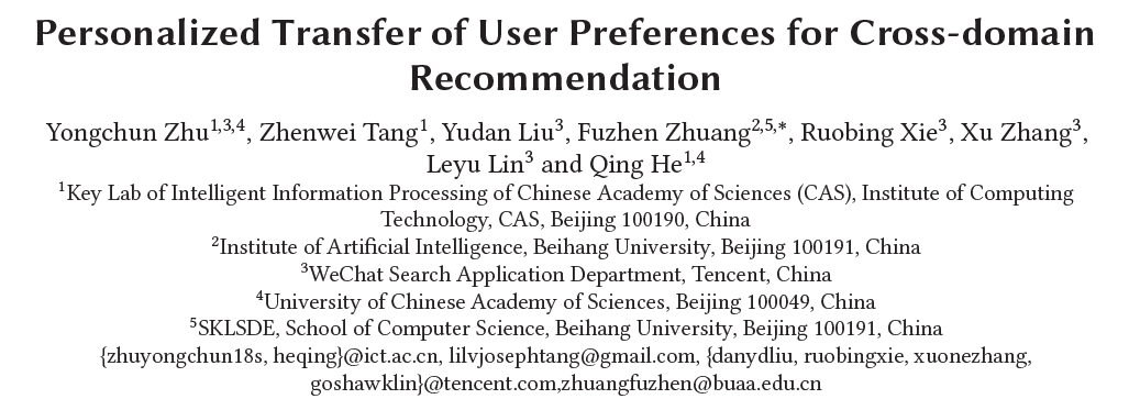 [3] Zhu Y, Ge K, Zhuang F, et al. Transfer-Meta Framework for Cross-domain Recommendation to Cold-Start Users[C]. SIGIR, 2021.