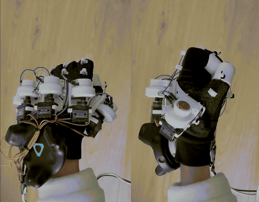 这一点没有简便的方法,只能在戴上头显时,感受松紧,“估算”限位位置。摘下头显之后,拧开舵机螺丝,调整舵盘,如此反复,直到在虚拟世界中正巧抓住物体。