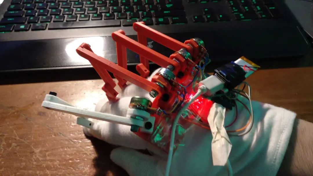 除此之外,长时间的拉伸,会导致拉绳、手套变形。由于整套装置并非完全贴合在手上,而是粘在手套上,手套的轻微移位也会带来力反馈的误差。