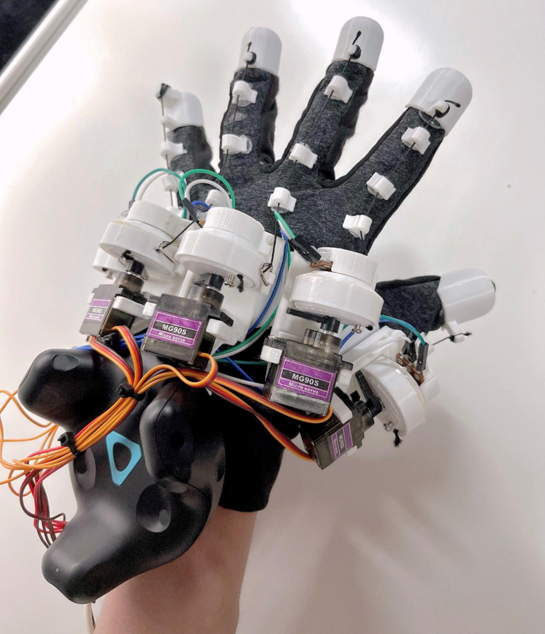 LucidVR 的 Discord 讨论组里有 14000 个关注者。有人将这副手套改良,把拉绳换成更加坚韧的塑料片,解决拉绳容易变形的问题。