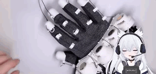 “何时”很好理解,就是当虚拟的手触碰到虚拟世界的物体的时刻。因此我们需要做一个媒介,让生物体的动作信号和计算机的电信号能相互转换,彼此“理解”。这也是我认为这副手套最为巧妙的设计。