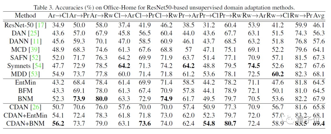 所以类别预测的判别性与多样性同时指向矩阵的核范数,我们可以最大化矩阵核范数(BNM)来提升预测的性能。