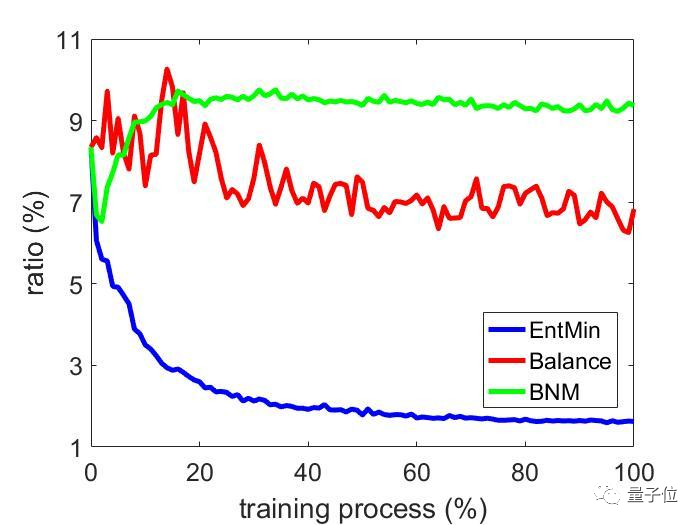 我们发现BNM确实可以保持未知类所占比例,从而保障整体预测的类别数量与准确性,从而保持多样性。