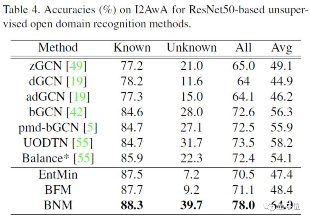 在开放域物体识别中单一的BNM约束超过有着冗杂损失函数的UODTN,达到SOTA性能,如下图: