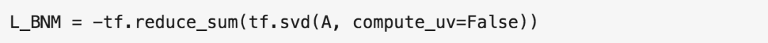 在常用的框架Pytorch与Tensorflow中,均可通过一行代码实现BNM。