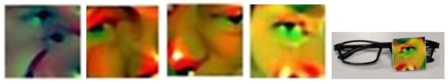 面对这一任务,同学们共设计了 4 款「特制眼镜」,将其打印下来,并使用 Task1 中的 I-FGSM 算法对人脸特定区域进行迭代。