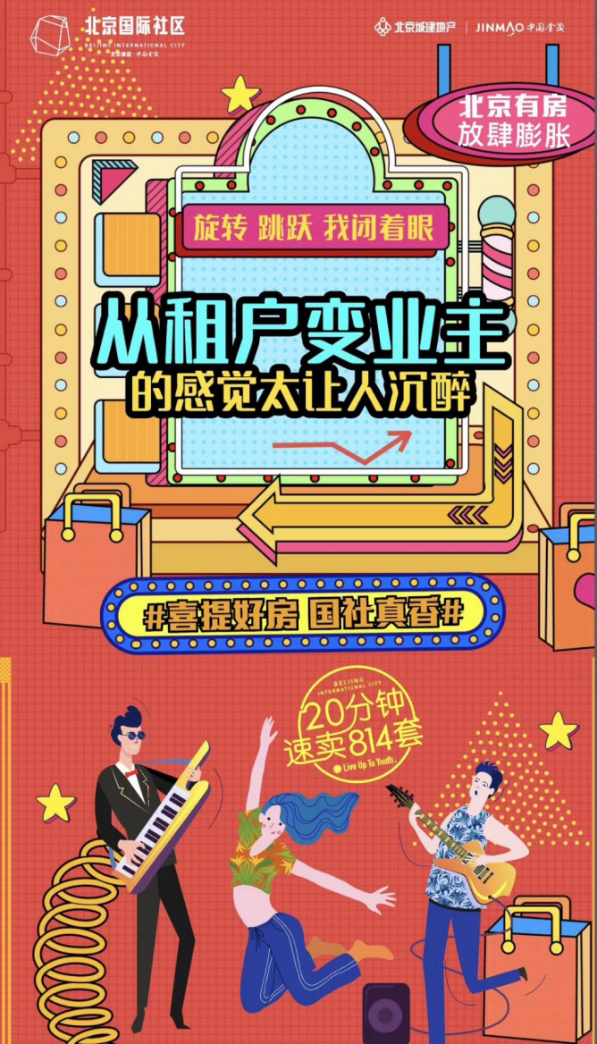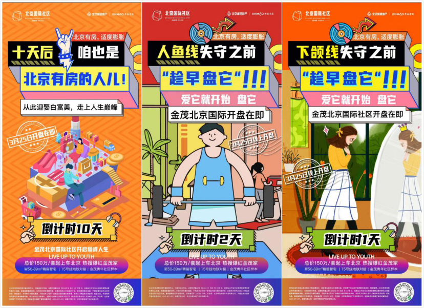 建立有想法的团队,找专业的合作方。在营销阶段,金茂北京国际社区出了非常多的内容,覆盖抖音、微博、媒体、社群、朋友圈等平台。其中有操盘团队自己生产的内容,包括项目基础信息、价值点的文字和视频介绍/趣味脚本,甚至为案场匹配了更合适年轻人的音乐歌单.