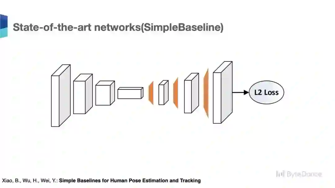 2018 ECCV 会议上,在人体姿态关键点检测任务中,微软亚洲研究院提出了一种通过三层级联的反卷积方法——Simple Baseline[3],来解码 ResNet 主干网路的低分辨率特征。这个方法很简单,但在人体关键点识别任务中取得了非常不错的成绩。Simple Baseline 的方法也遵循了从高分率到低分辨率学习,然后从低分辨率特征恢复高分辨特征的原则。