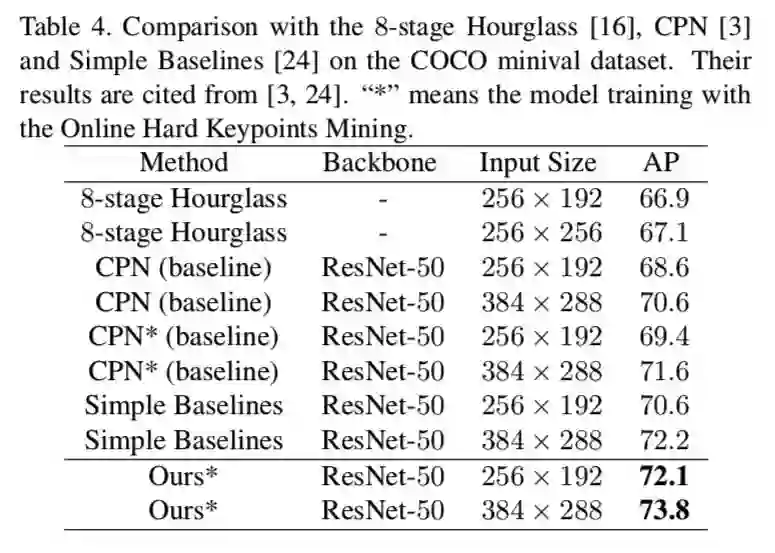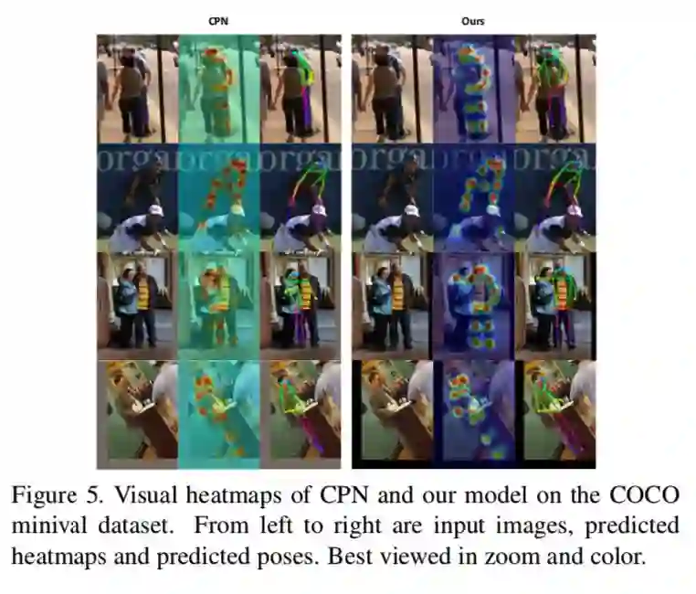 论文采用人体关键点检测的最权威数据集之一 MS COCO(多人人体姿态数据集)。论文的 baseline 采用 Cascaded Pyramid Network(CVPR 2018)。论文首先在 MS COCO 进行消融实验,以验证各个模块的重要性。