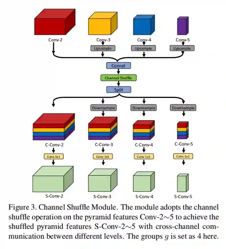 首先,在卷积神经网络中,高层特征往往具有更大的感受视野,所以它们对于复杂场景下的遮挡点、不可见点的推断更有帮助。另一方面,卷积神经网络的低层特征往往具有更大的分辨率,所以它们对于关键点的精细调整更加有效。然而,在现实场景中,高低层特征之间权衡往往复杂多变。因此,论文提出通道交流模块来促进不同分辨率层特征之间的跨通道信息交流。通道交流模块的目的是通过网络自学习来校准高低层特征之间的相互补充和强化。