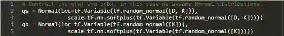 接下来我们将使用Edward库来设置权重和偏差的近似分布Qω(ω)和Qb(ω):