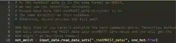 我们可以从此处下载非MINST图像。如何转换成MNIST格式在此处获得。在此例中,我们使用的是转换后的数据。我们假定所有需要的文件都在notMNIST文件夹下,并且使用TensorFlow方法。