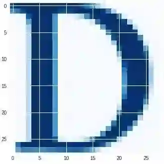第一次测试我们使用字母的非MINST数据,并观察模型对这些数据的反应如何。我们希望的是,如果输入一张陌生的图像,比如字母"D",当模型之前用数字{0,1,...,9}来训练时,那么它应该输出一个分类但不确定是什么。