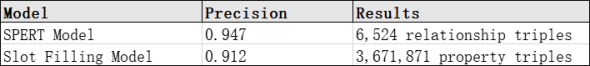在信息提取步骤中,我们自动从半结构化和非结构化数据中提取实体、关系和属性等结构化信息。关键技术包括实体提取、关系提取和属性提取。除了传统的HTML提取和正则模板方法。且我们设计方法单独处理了百度百科页面中的表格数据,将其转换为结构化的RDF三元组。我们往往将基于模型的方法和基于模板的方法的结果结合起来,形成最终的结果。在大多数任务中,正则表达式模板的效率高于模型,模型通常起着互补作用。
