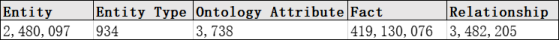 最终构建的中文开放人物知识图谱由2,480,097个图形实体组成。共提取了3,482,205个关系三元组,其中17,491个来自非结构化数据,其余来自结构化或半结构化数据。总共提取了419,130,076个属性三元组,其中14,232,058个来自非结构化数据。下图描述了最终的人物知识图谱的规模。