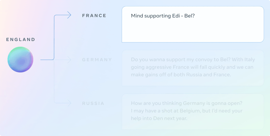 例如,CICERO可能会与另一位玩家协商战术计划,向盟友保证其意图,讨论游戏中更广泛的战略动态,甚至只是进行随意的闲聊——包括几乎任何人类玩家可能会讨论的内容。