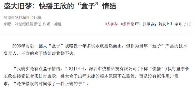 2007年,在连续创办了两家公司都无疾而终后,王欣在深圳创办了他的第三家公司——深圳市快播科技有限公司。
