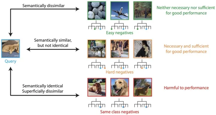 针对负例的质量和重要性,Facebook 进行了一项很有意思的研究工作,定量分析了 CV 领域对比学习里的负例对模型性能的影响。