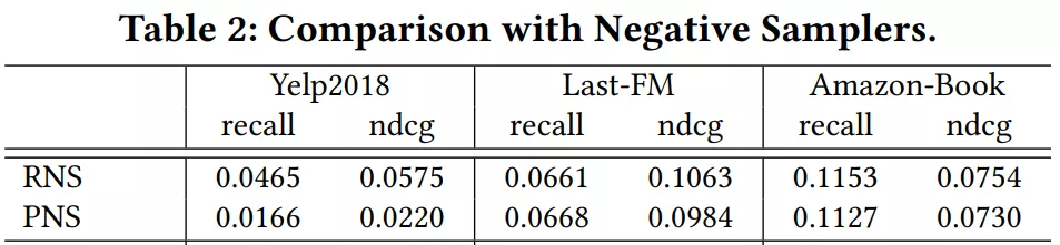 尽管具有一定的解释性,但从学术界的相关实验结果来看,PNS 在推荐系统中并不是稳定地优于 RNS,有时还会显著降低模型结果。如何合理利用商品流行度仍然是推荐系统中未被充分探索的问题。