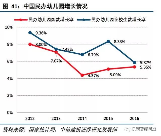其中,2016年我国民办幼儿园在园人数2438万人,占比55%,较上年增速为5.87%,而民办园园数增长率更低为5.35%。