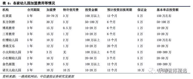 其他幼儿园单店投资额基本在50万之下,但预计投资回报率基本都在1年内,说明这一行业回报率很高。