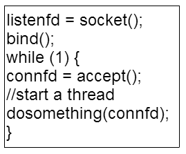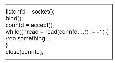 以 TCP server 为例来展开说明,最简单的一个 TCP server 代码,版本一示例如图 3 所示。