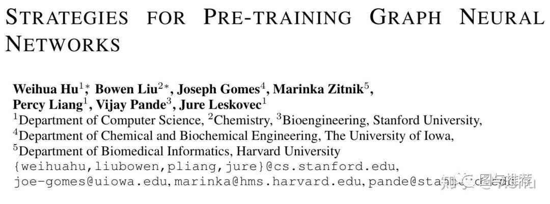 本文是对斯坦福大学Jure组和哈佛大学生物医疗中心联合发表 ICLR2020 (标题错写为ICML)Strategies for Pre-training Graph Neural Networks的解读.