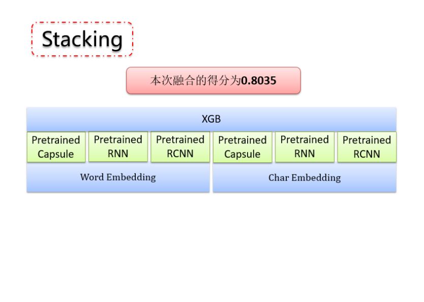 通过对于词向量做一个增强,即利用word2vec与glove的差异性,构建一个鲁棒性更高的词语向量表征。具体而言,我们对于每个词通过word2vec以及glove分别训练出两个200维度的词量,两种向量相结合,表征出更强的语义信息,从而得到一个 400维度的词向量。大家也可以word2vec+glove+faxttext的组合,对于我来说,效果并不是很好,我觉得可能的原因是faxttext与word2vec的相似性很高,弱化了glove的向量表征,同时,对于glove单独的词向量我也没有尝试过,大家也可以尝试一下。