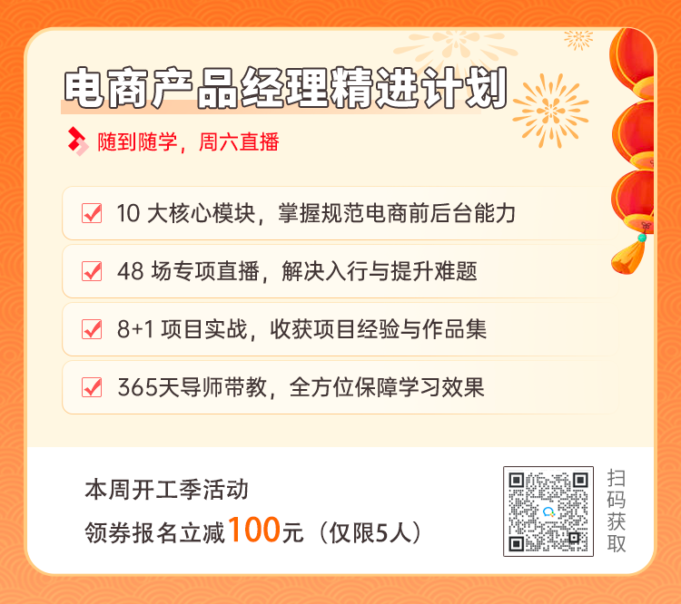为此,起点课堂联合2位电商产品圈人气导师,帮助0-3岁产品经理系统构建大厂规范的电商产品能力框架,成为行业规范的高薪电商产品经理!