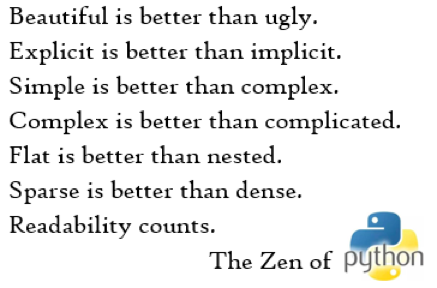 首先从代码说起,要求非常清楚,要能写出让别人很容易看懂的代码,这个要求好像非常低,但是其实很多人是做不到的。这里面我引用的是 Python 的非常好的一句话,第一句话是优美比丑陋好,你的显示比隐示更好。其实 Python 语言,很多人没有关注到这里面讲到的东西,所以我们代码应该是写的要尽量简单、尽量优美,要尽量使用简单的方法。