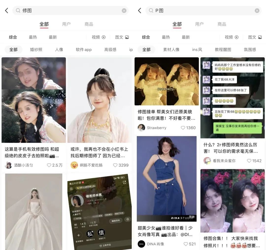 据新红(新榜旗下小红书数据平台)日常收录的账号数据显示,名称中出现“修图”、“P图”的账号数量超过1.4万。